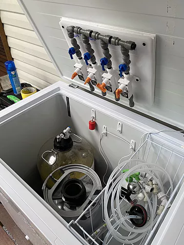 Übrigens, falls du die Gasplatte auch für deine Blowtie-Spundventile nutzen möchtest, ist das ebenfalls kein Problem! Einfach einen der Inline-Druckminderer rausnehmen und durch ein Blowtie-Spundventil ersetzen, und schon kannst du den Restdruck in deinem Gärbehälter im Blick behalten.