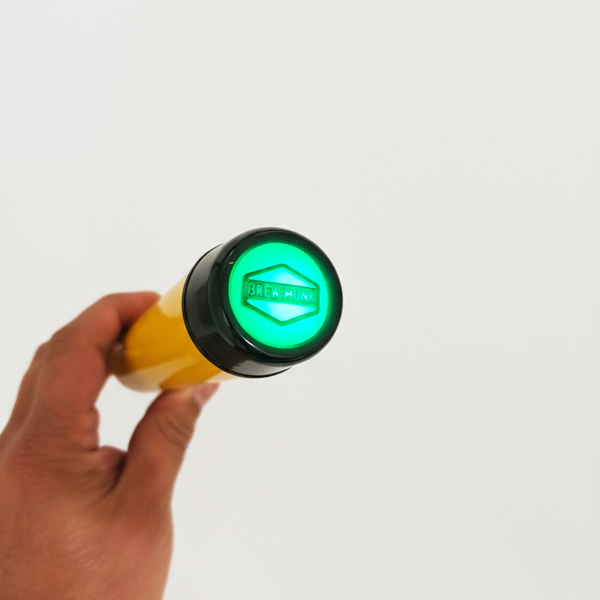 Die Bedienung ist denkbar einfach und erfolgt ohne Öffnen des Geräts. Je nach Position – auf dem Kopf für Paarung, flach für den Schlafmodus oder aufrecht für Messungen – funktioniert alles reibungslos. Eine LED im transparenten Deckel informiert dich über den Status der Verbindung, der Messung und den Batteriestand. Über die myBrewMonk™ Plattform kannst du den gesamten Brauprozess digital steuern, einschließlich der Überwachung deiner Gärung, auch wenn du keinen Brew Monk Wi-Fi Braukessel besitzt.